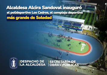 Hoy: • Alcaldesa Alcira Sandoval inauguró el polideportivo Los Cedros, el complejo deportivo más grande de Soledad * La alcaldesa anunció que pronto se iniciarán obras de nuevos parques y polideportivos en los barrios Costa Hermosa, Don Bosco IV, Almendros III y Las Gaviotas #TodosContraElDengue #VamosPa´lante