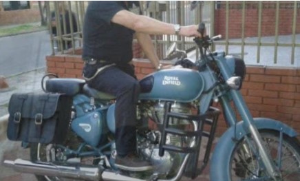Su casa está en la carrera 11 con calle 26 Sur, en el barrio Sosiego, en Bogotá. La motocicleta permanece allí. Es una Royal Enfield Classic 500, color azul, modelo 2017 de placas RFD48E, la misma placa que aparece en la infracción de tránsito.