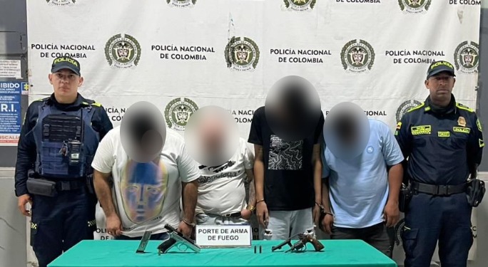 En el procedimiento fueron capturados cuatro individuos de 41, 27, 23 y 30 años de edad, quienes se movilizaban en el vehículo al momento de la intervención policial. Los capturados fueron dejados a disposición de la Fiscalía General de la Nación para que respondan por el delito de fabricación, tráfico, porte o tenencia de armas de fuego, partes o municiones.