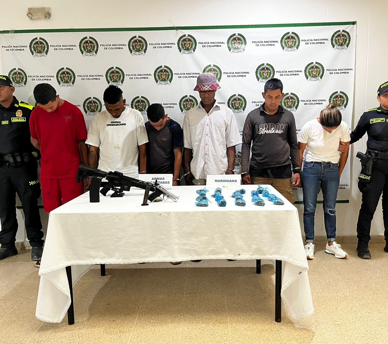 El procedimiento de capturas se realiza mediante 4 diligencias de registro y allanamiento, realizada en los municipios de Soledad (barrio las Moras), Palmar de Varela (barrio Alfonso López y la Primavera) y Santo Tomás (barrio Primero de Mayo), donde se logra incautar un (01) arma de fuego tipo fusil traumático con ocho (8) cartuchos, un arma de fuego tipo pistola traumática y (570) gramos de marihuana.