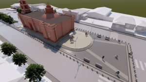 – Plaza central y plazoleta complementaria: con sobretarima para eventos masivos.