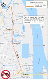 - Calzada occidental (sentido norte – sur) del corredor portuario entre la carrera 46 y la carrera 38.